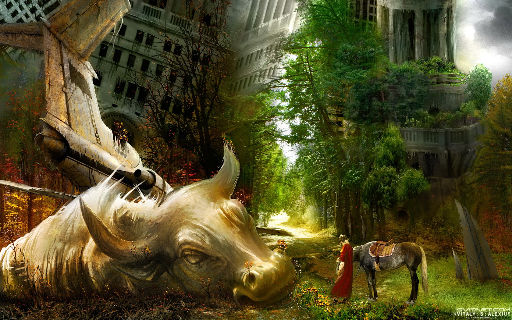 Batalla de arte en la ciudad a caballo y batalla con grifosBatalla de arte en la ciudad a caballo y batalla con grifos