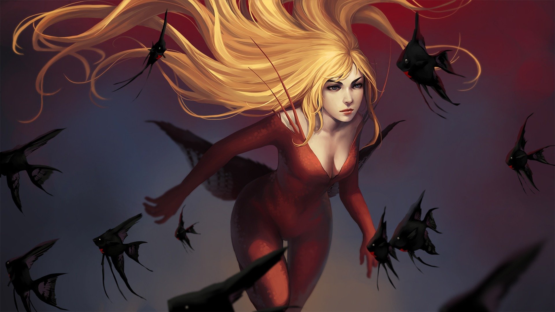 Chica rubia con el pelo revoloteando