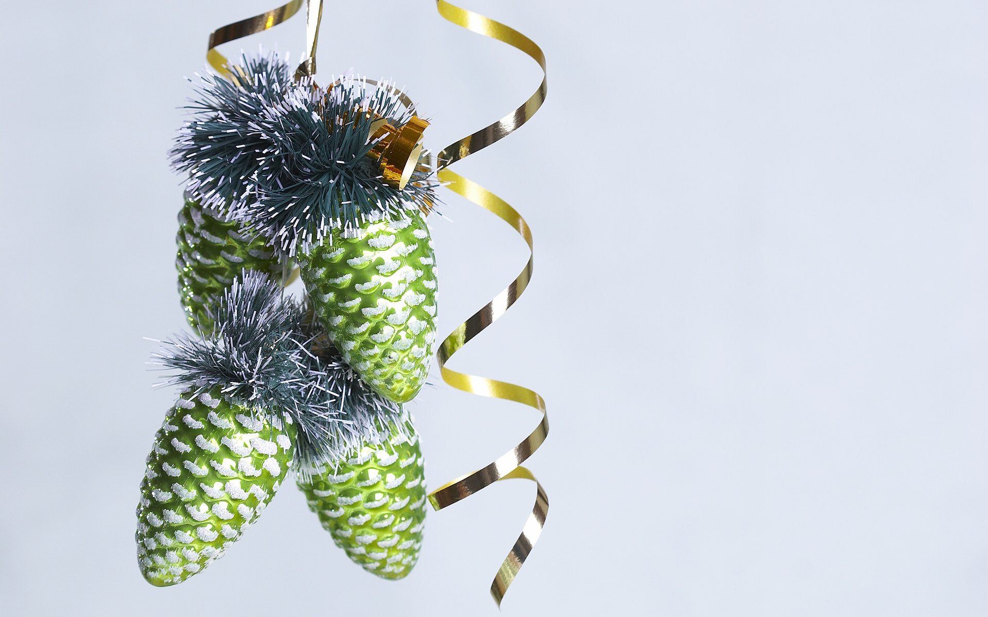 Papel pintado de navidad con copos de nieve, ramita en bolas y cinta rojaPapel pintado de Navidad con copos de nieve, ramita en bolas y cinta roja