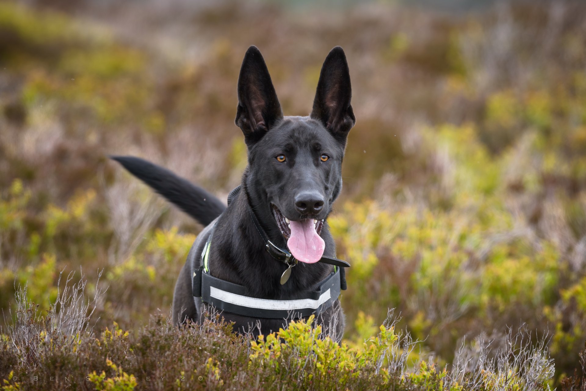 Perro pastor con orejas grandes y lengua sacada