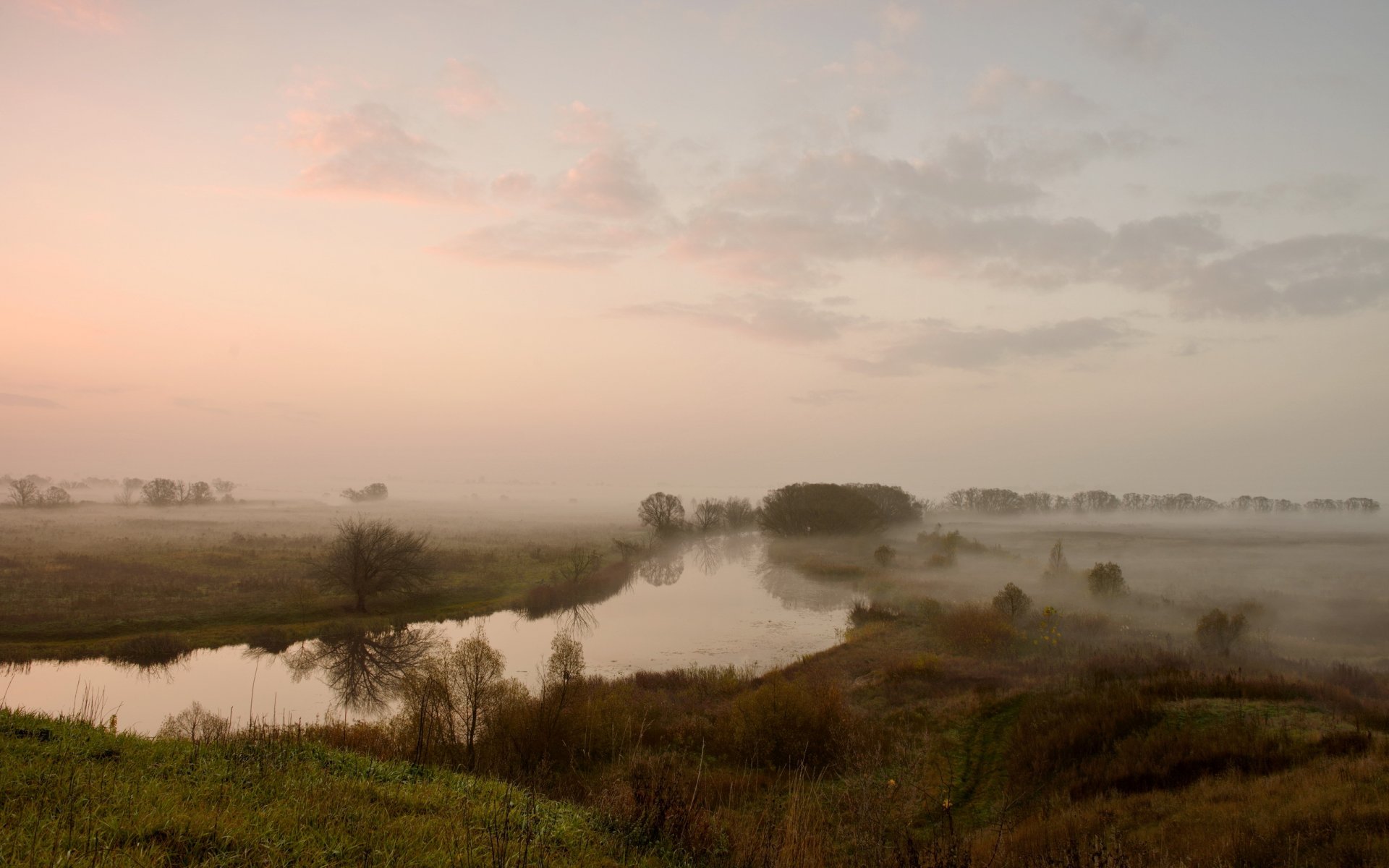 Niebla en el campo sobre el río