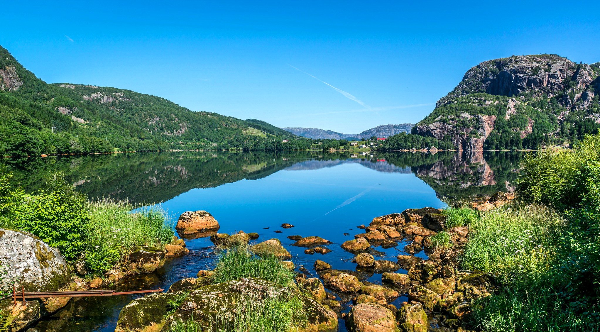 Cascada poco realista con una casa de campo con una puerta blancaCascada poco realista con una casa de campo con una puerta blanca