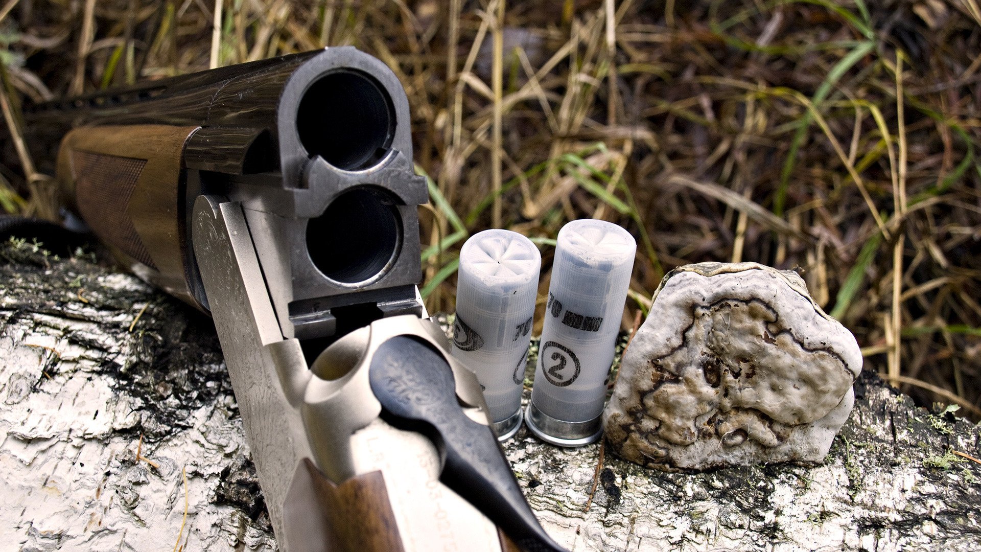 Un perro de caza descansa sobre una roca en el bosqueUn perro de caza descansa sobre una roca en el bosque