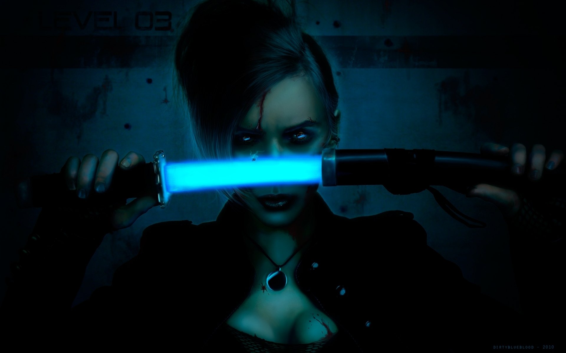 La mirada sedienta de sangre de la chica de debajo de la daga