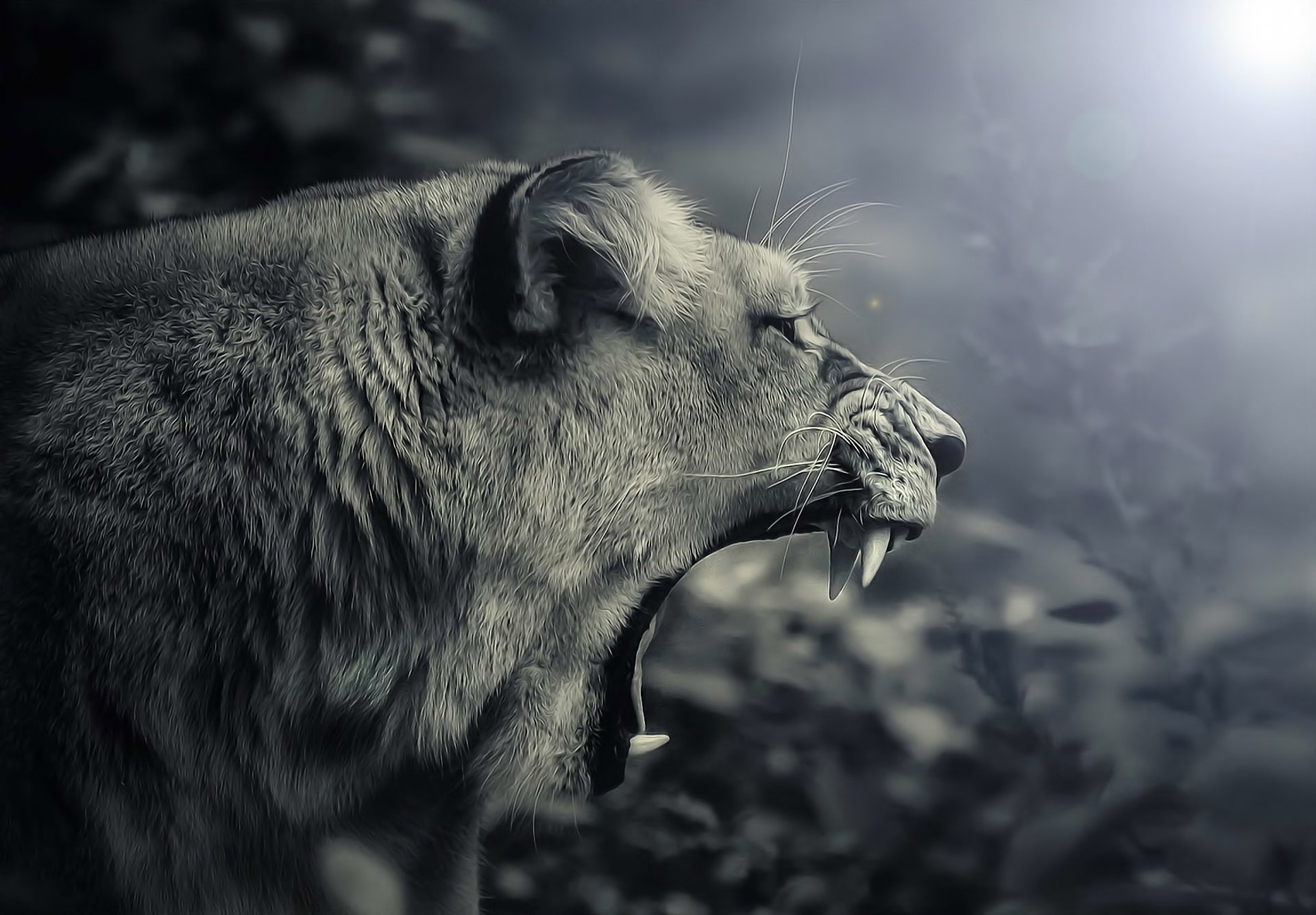 Una chica con un casco y una espada de pie en el humoUna chica con un casco y una espada de pie en el humo