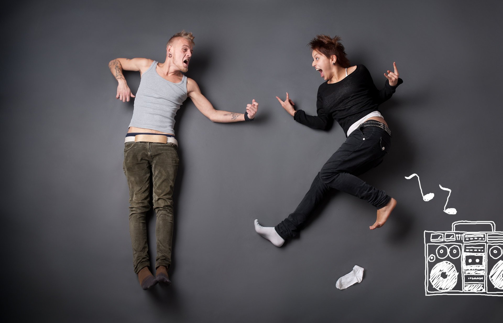 Un hombre sostiene un paraguas sobre una chica acostadaUn hombre sostiene un paraguas sobre una chica acostada