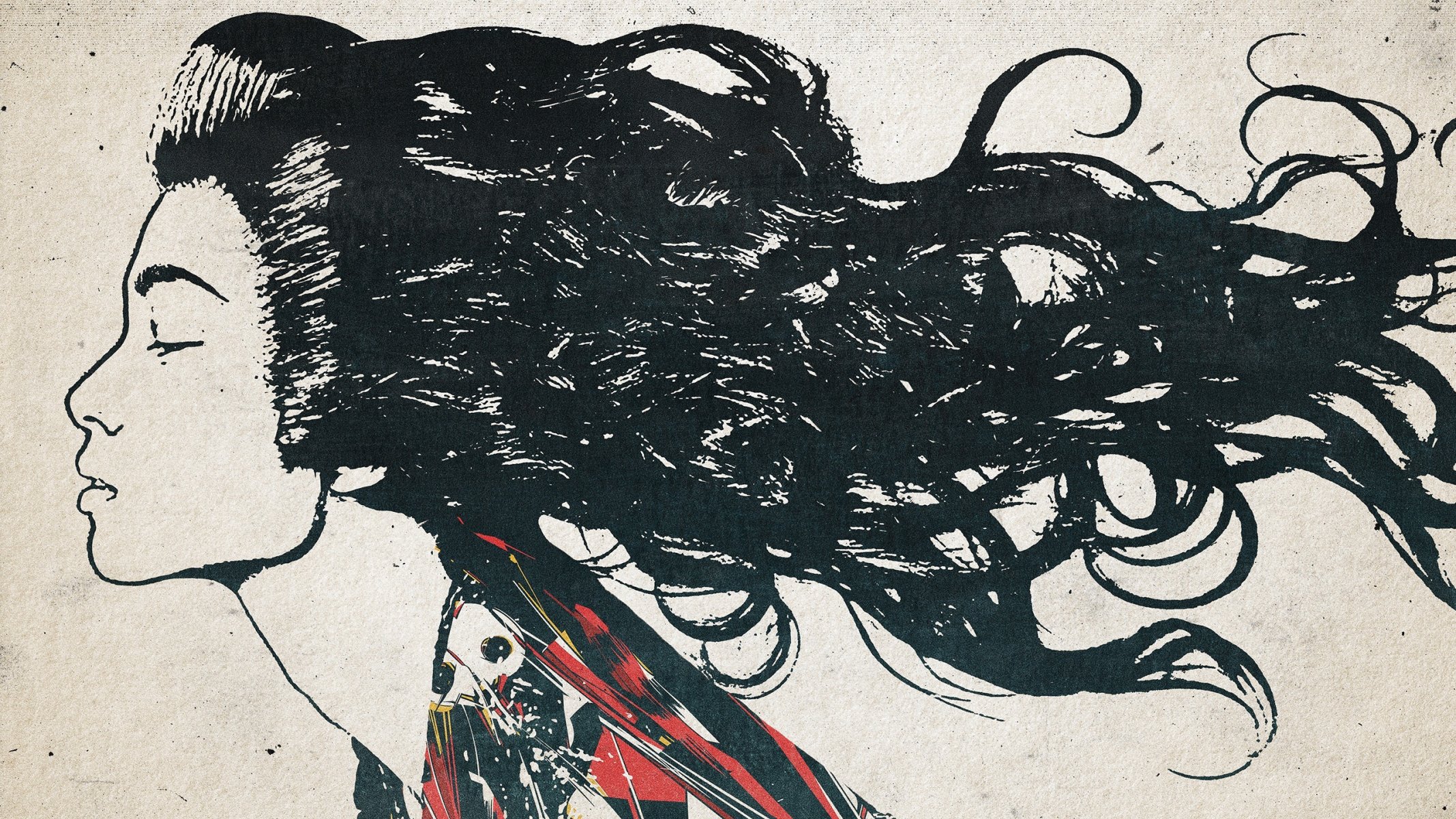 Chica con el pelo largo en desarrollo en el vientoChica con el pelo largo en desarrollo en el viento