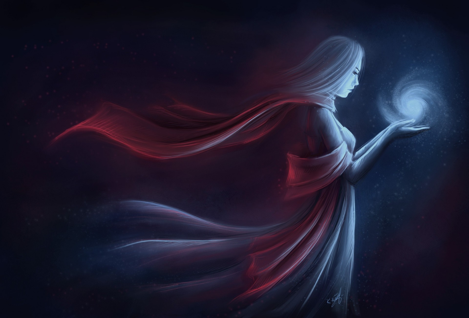 La chica de la fantasía proyecta una sombra en forma de humoLa chica de la fantasía proyecta una sombra en forma de humo