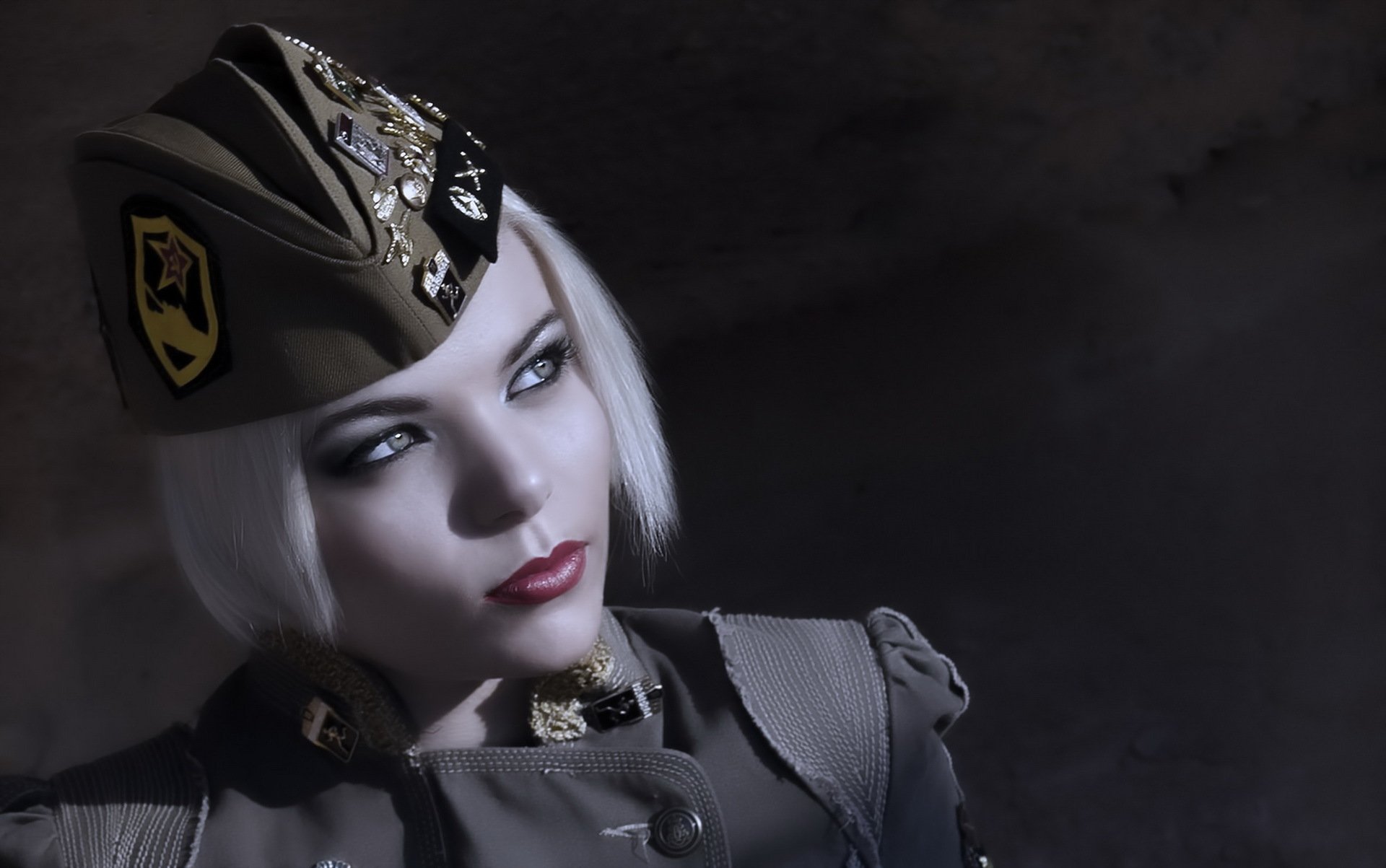 Chica en un fondo oscuro con una mirada inusual