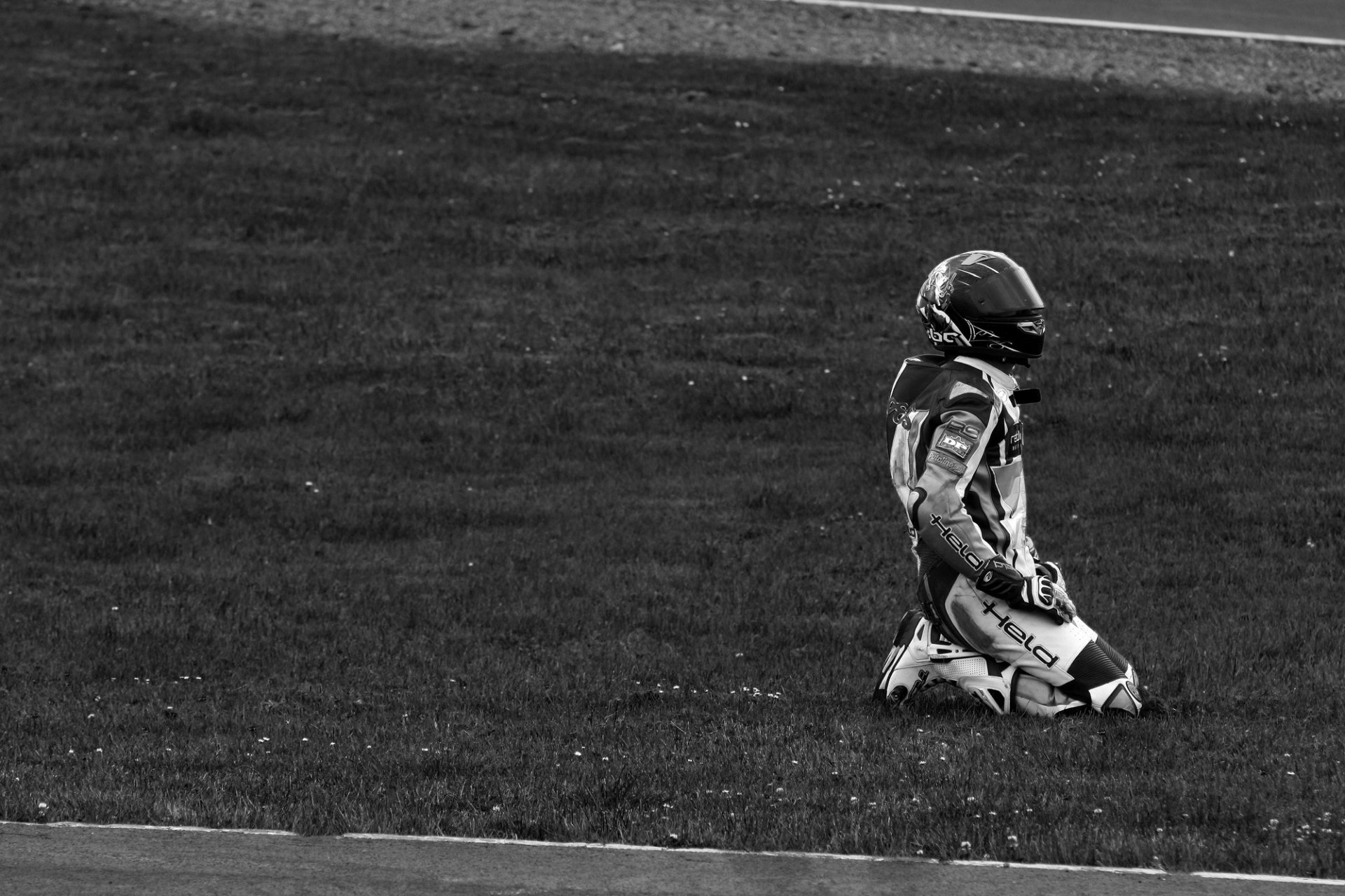 Un hombre en una moto contra un grafiti en una paredUn hombre en una moto contra un grafiti en una pared