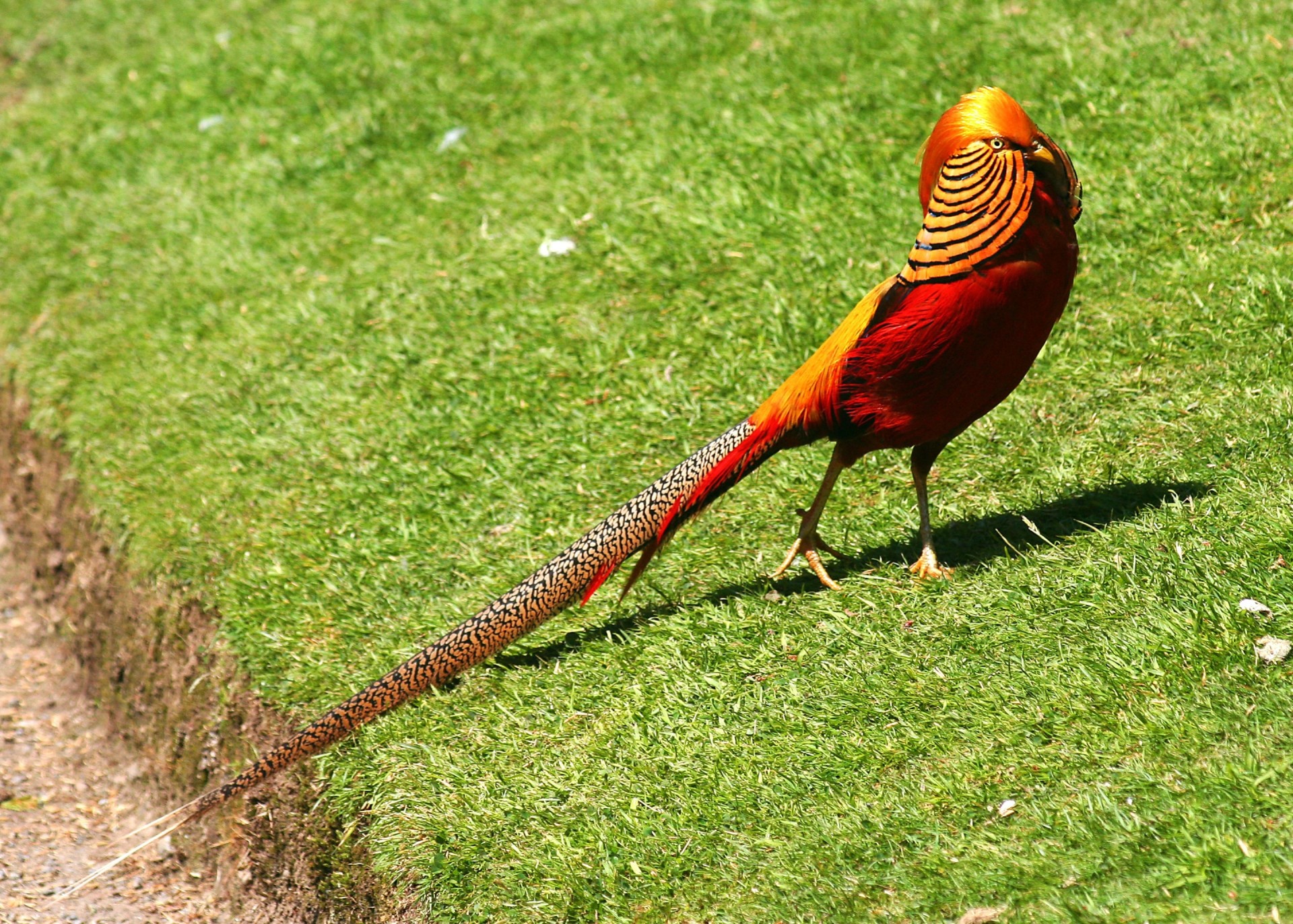 Pavo real dorado con la cola abierta en reverenciaPavo real dorado con la cola abierta en reverencia