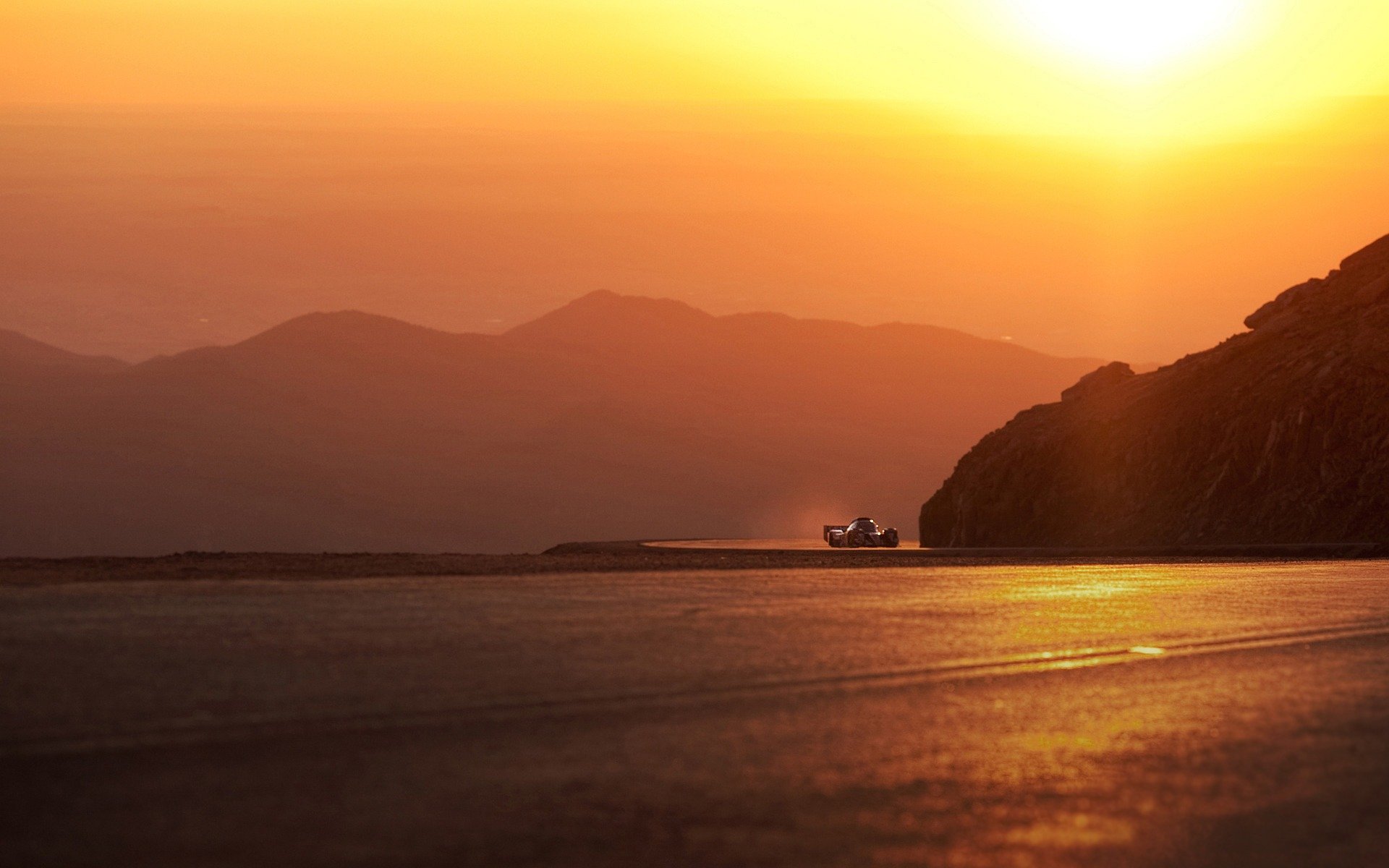 Carrera en el fondo de la puesta de sol en el desiertoCarrera en el fondo de la puesta de sol en el desierto