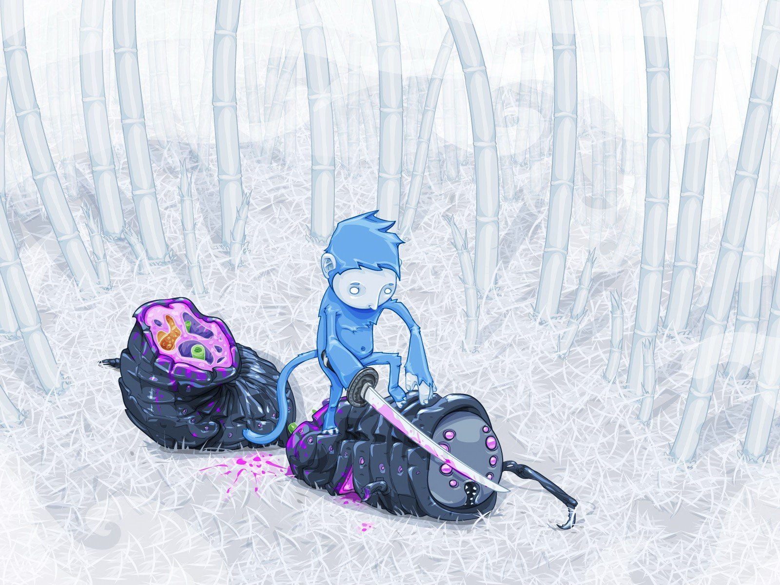 Oyezyana con la espada ganó en la batalla con el monstruoOyezyana con la espada ganó en la batalla con el monstruo