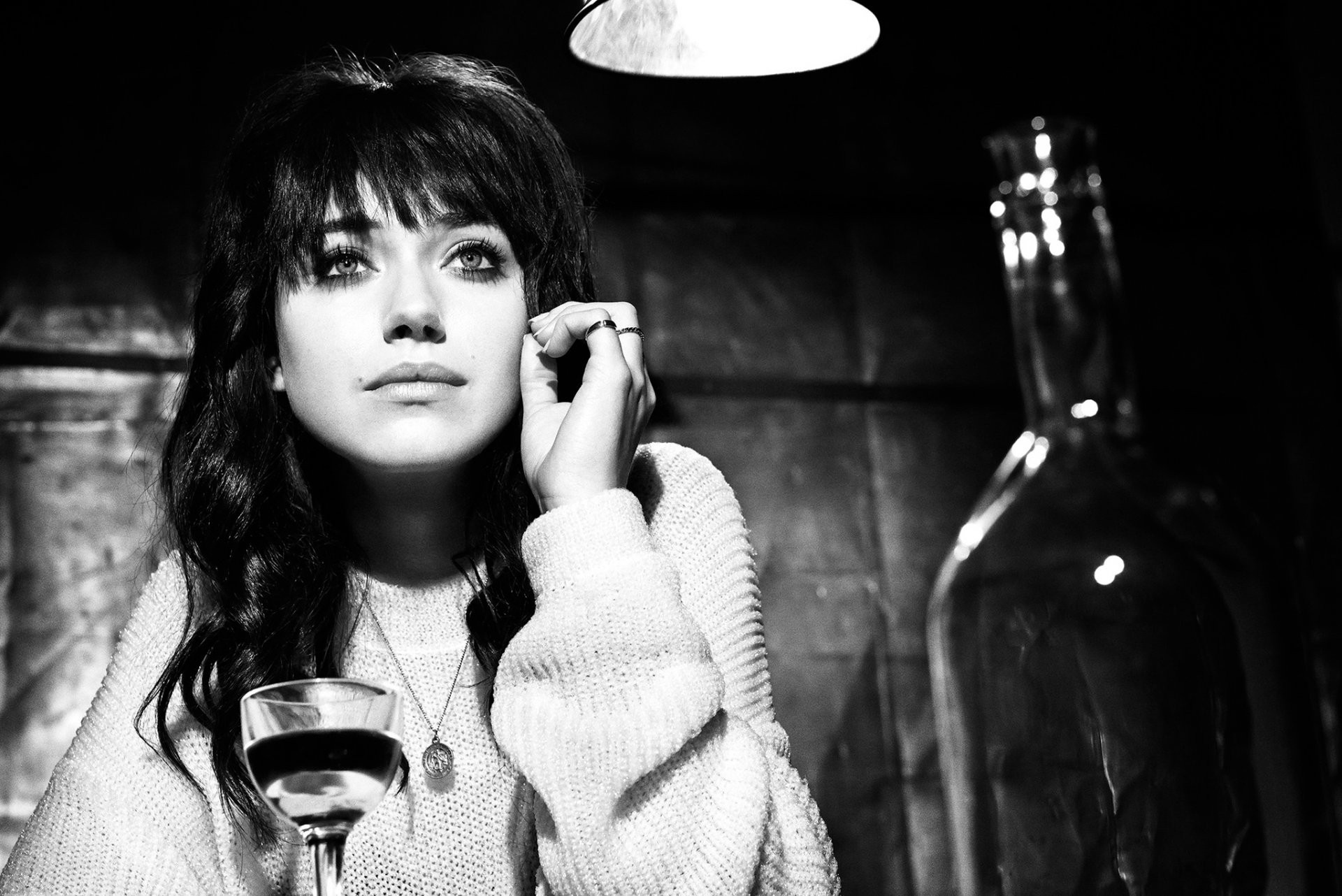 Sesión de fotos para la revista elle. chica con sombrero en una habitación luminosaSesión de fotos para la revista ELLE. Chica con sombrero en una habitación luminosa