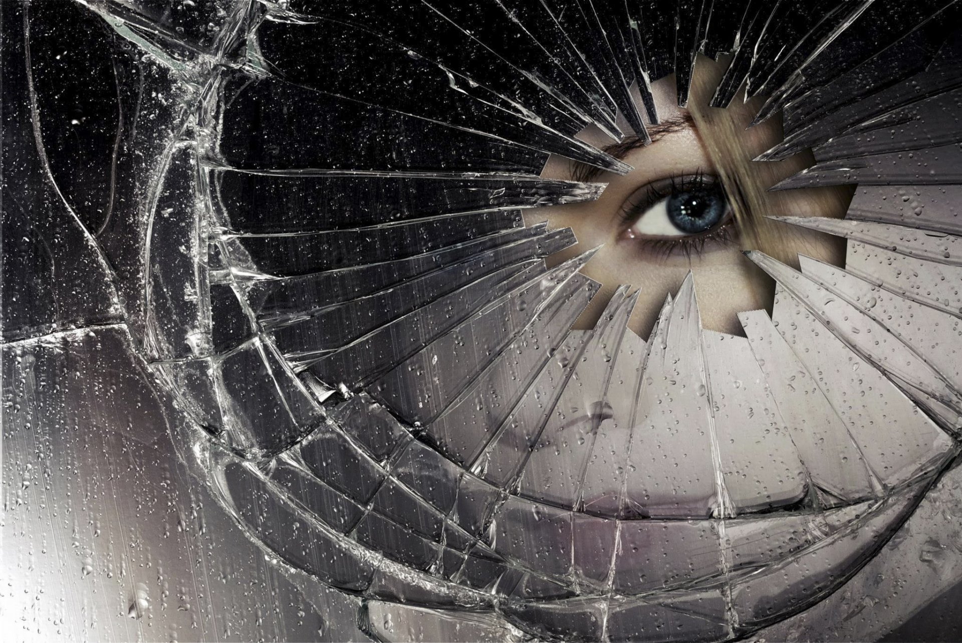 Vidrio roto a través del cual se puede ver el equipo y la nave