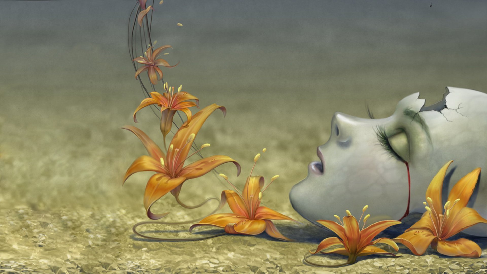 La máscara rota llora lágrimas de sangre