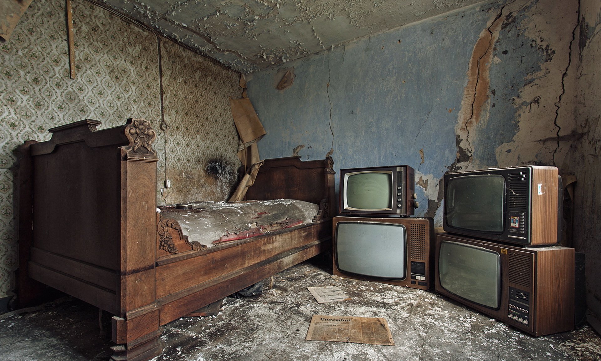 Hay cuatro televisores detrás de los cuales se reunieron obomHay cuatro televisores detrás de los cuales se reunieron obom