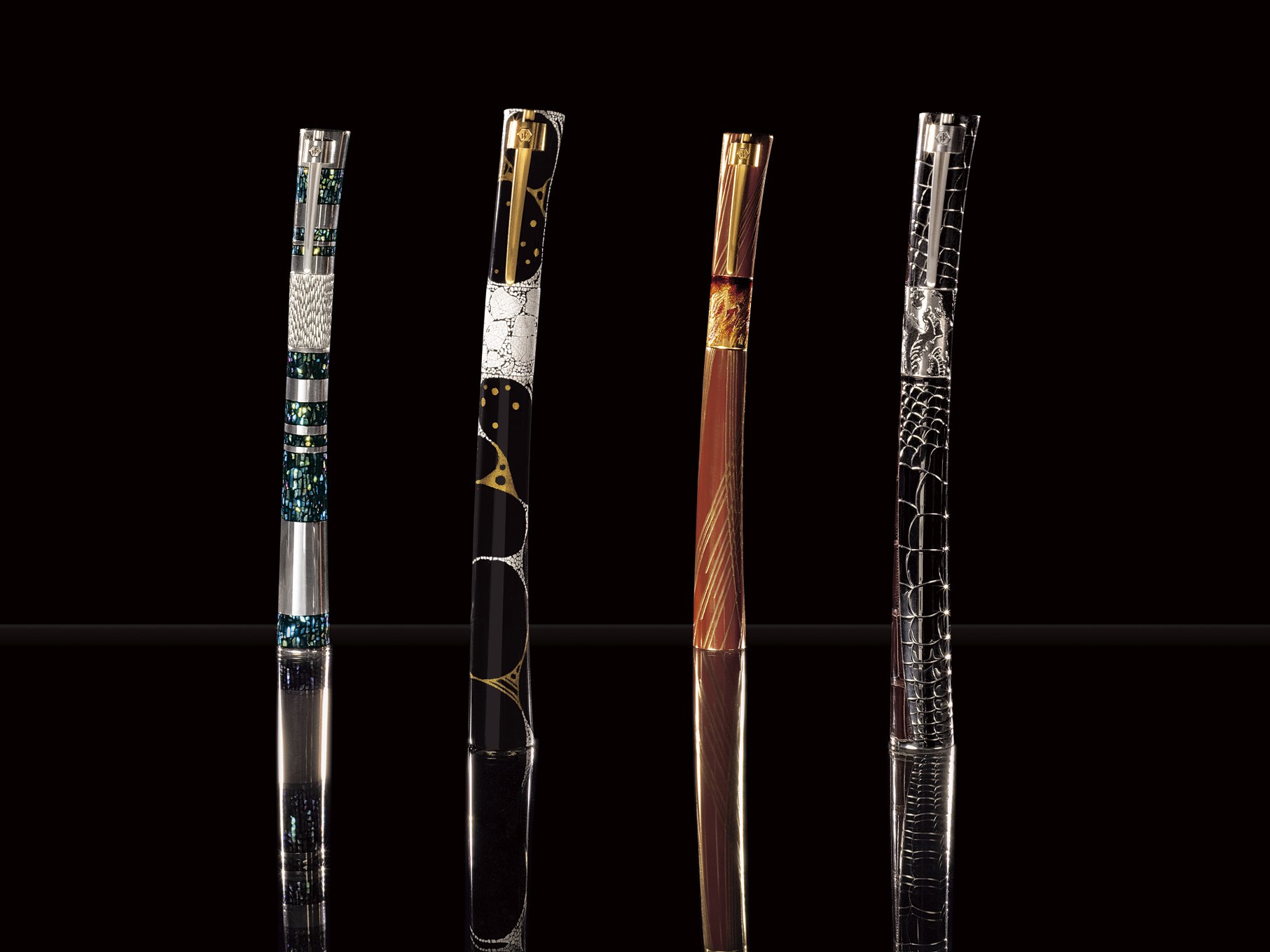 Cuatro pistolas de diferentes marcas en la superficie de madera