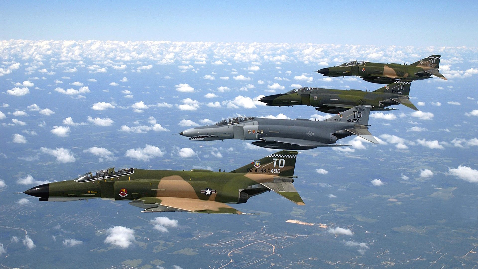 Cuatro en el cielo desfilan combatientes