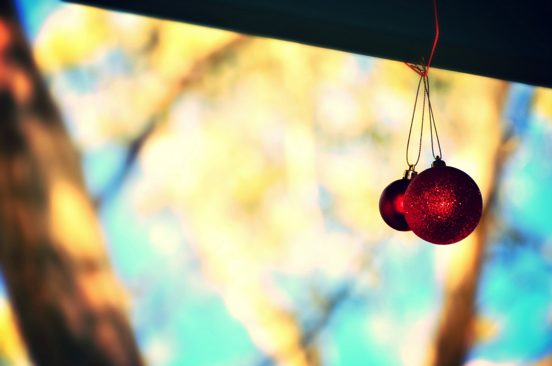 Bola de navidad en el fondo del árbol de navidad con luces encendidasBola de Navidad en el fondo del árbol de Navidad con luces encendidas