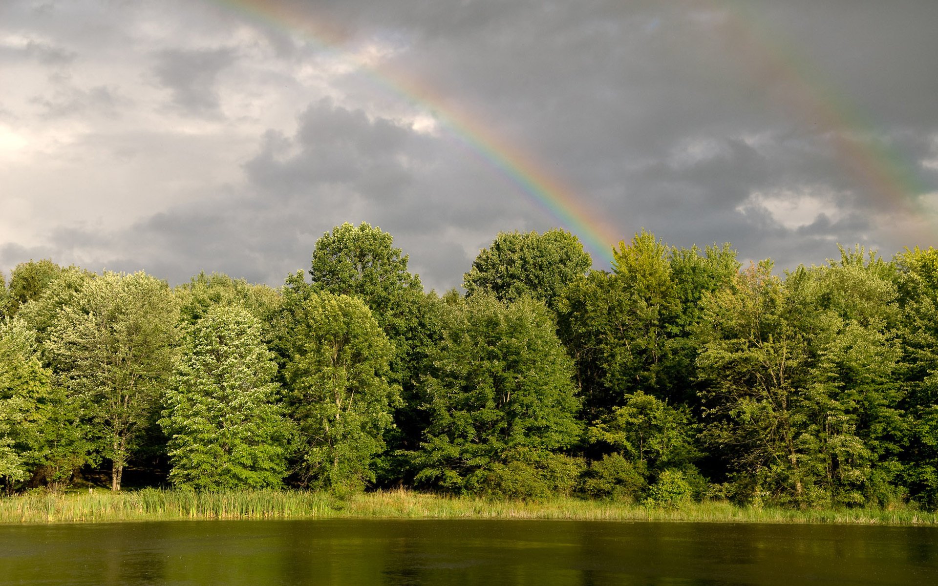Imagen de un arco iris en una pizarra contra un cielo gris opacoImagen de un arco iris en una pizarra contra un cielo gris opaco