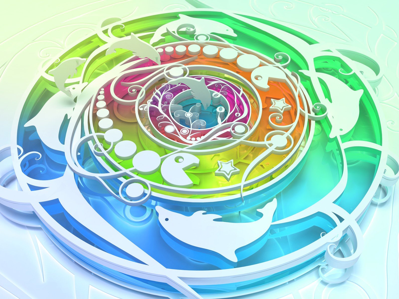 Patrón circular de píxeles y delfines