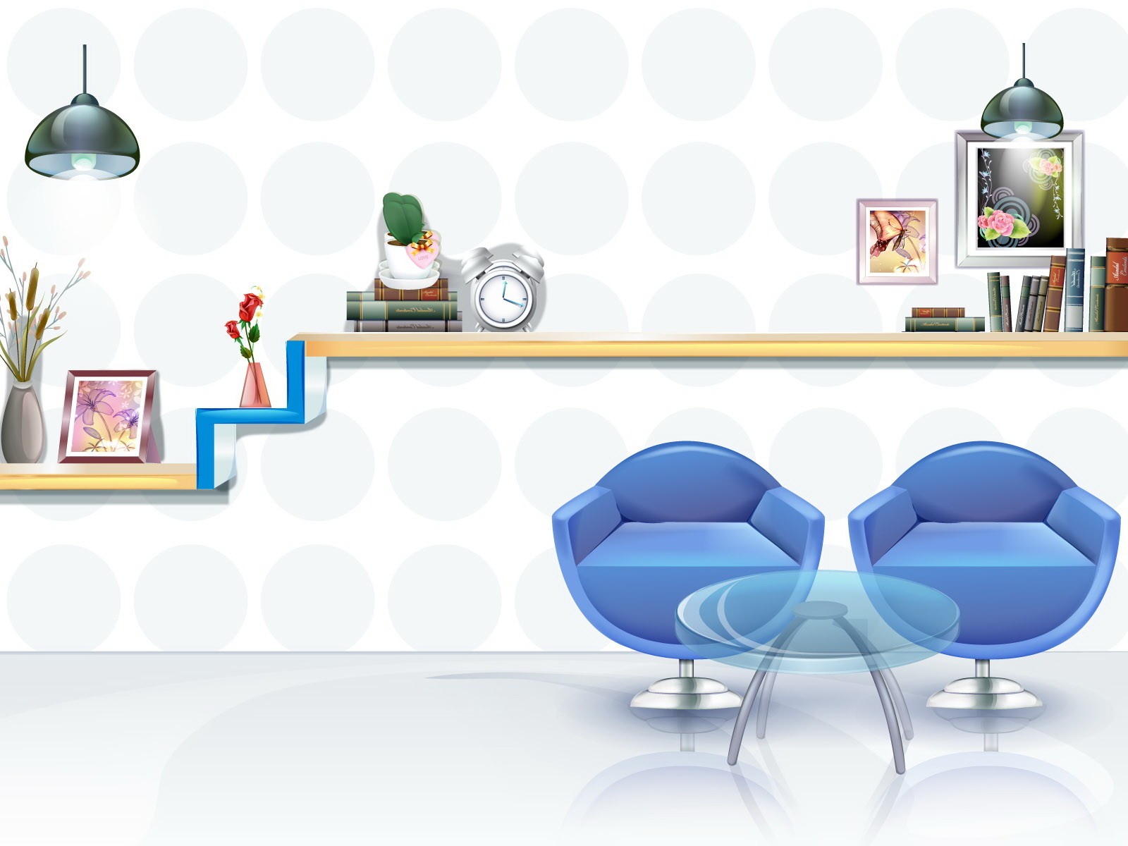 Interior dibujado a mano de la habitación con estanteríaInterior dibujado a mano de la habitación con estantería