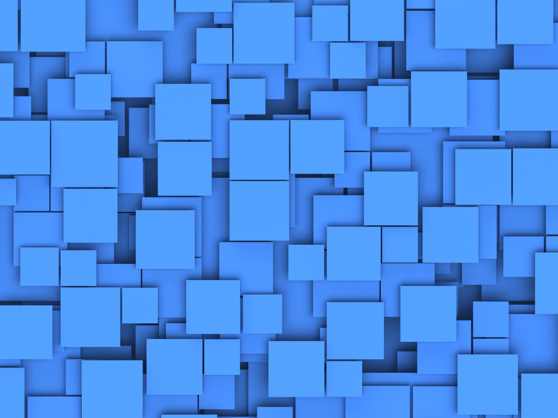 La superposición de cuadrados de diferentes tamaños en azul crea una imagen inusual