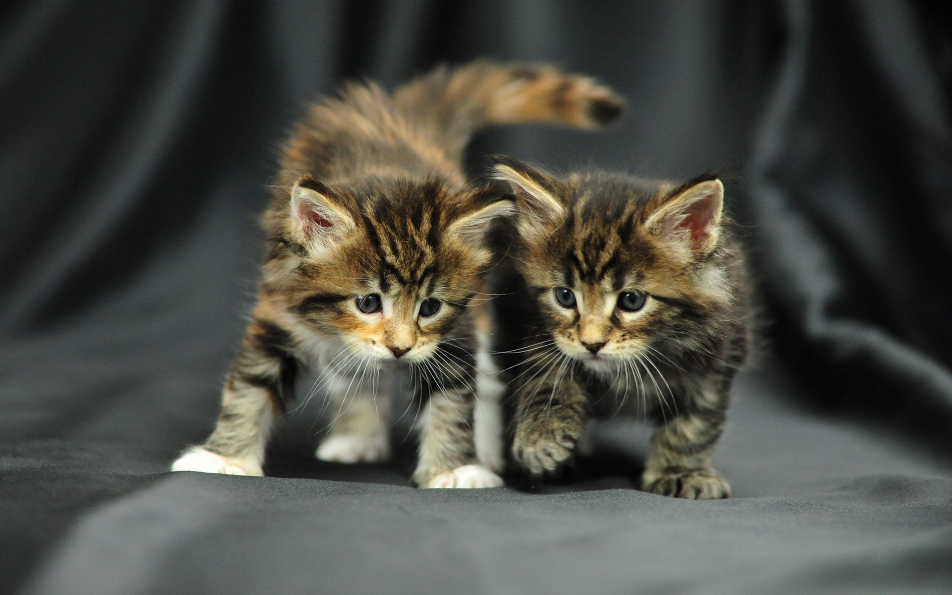 Fotos de gatitos de pie. bebés peludos sobre un fondo negroFotos de gatitos de pie. Bebés peludos sobre un fondo negro