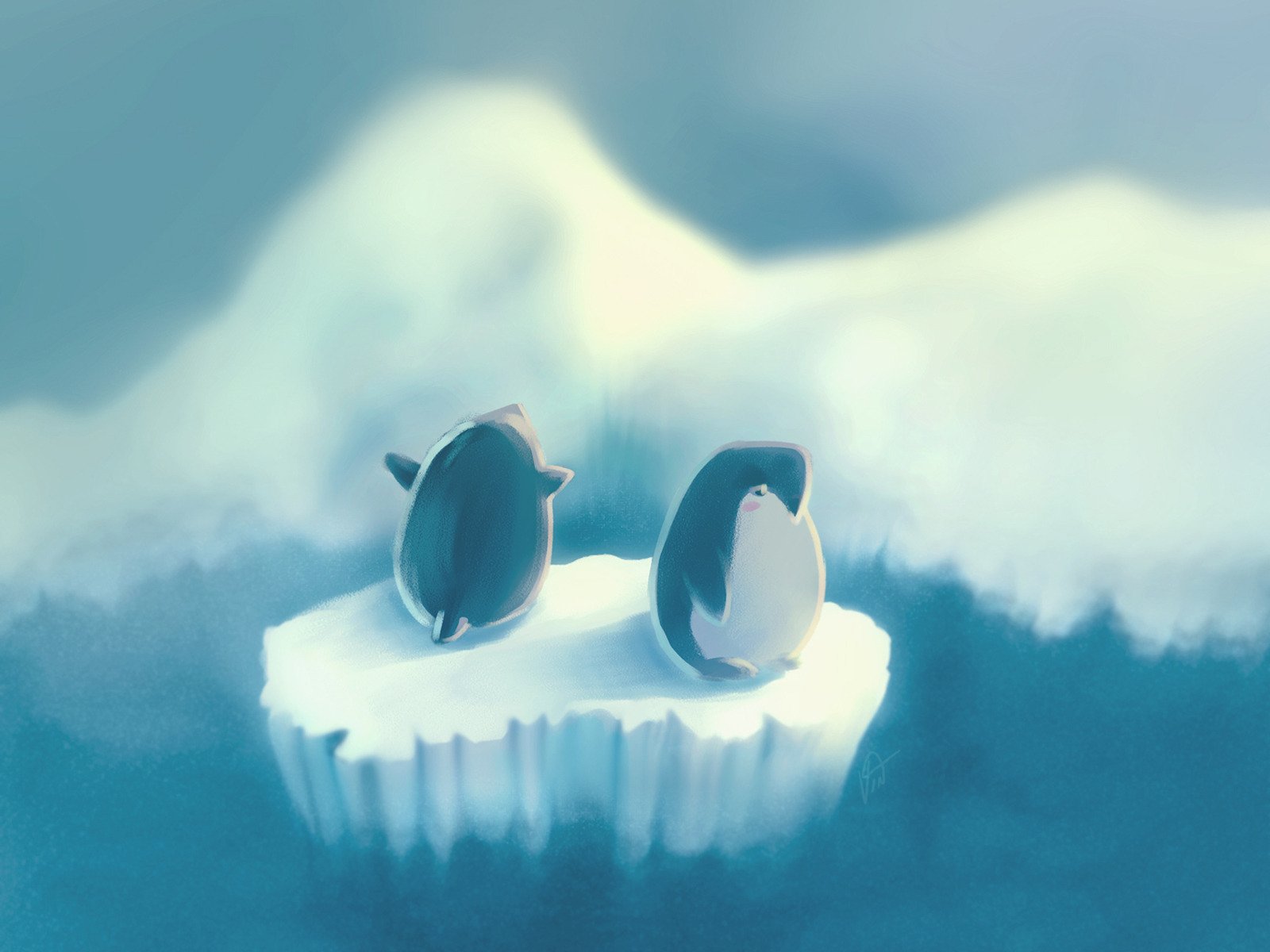 En la imagen, dos pingüinos se establecieron en un témpano de hielo
