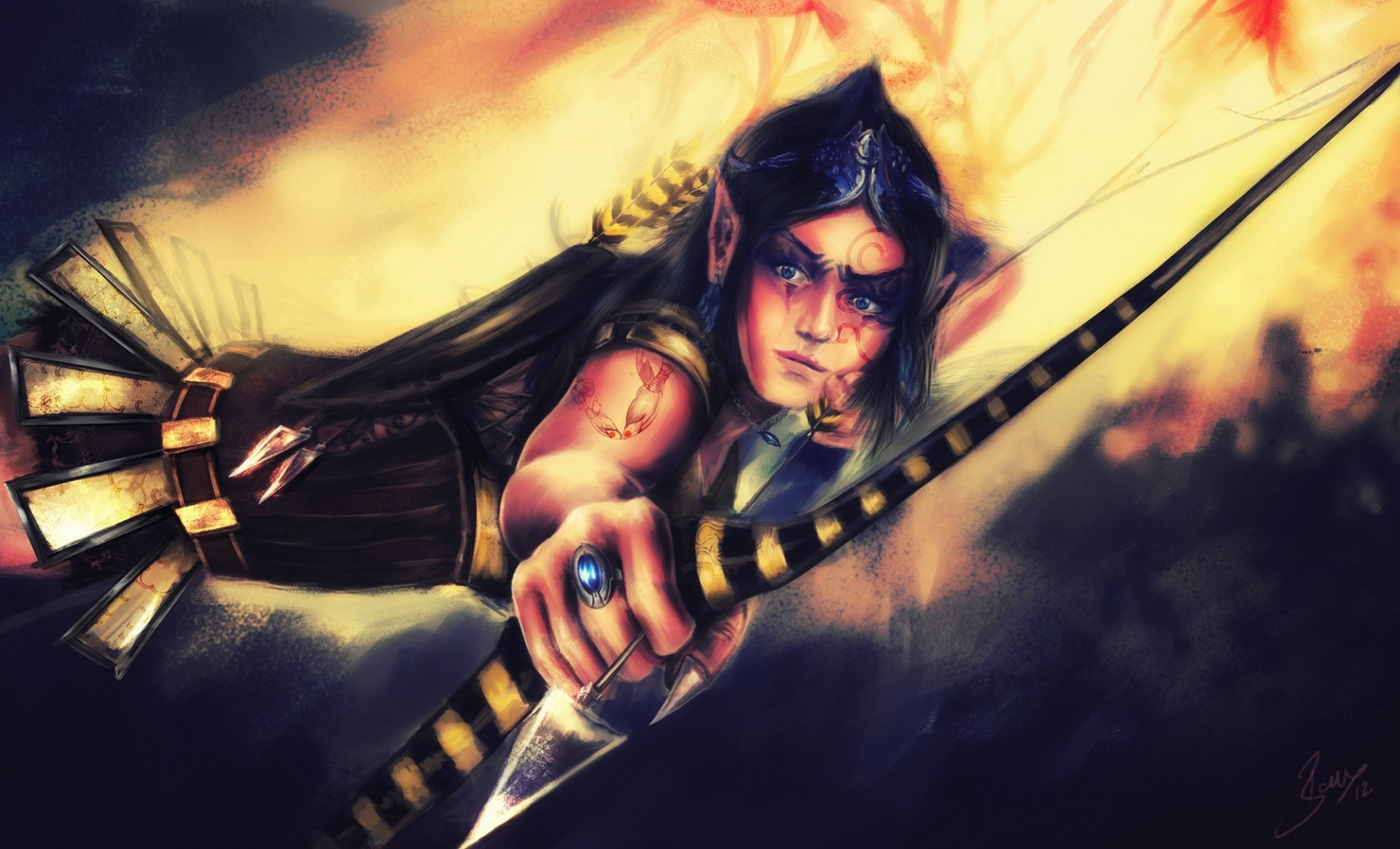 El arte de un duende acompañado de bestias en forma de un tigre blanco y un lobo negro con ojos rojosEl arte de un duende acompañado de bestias en forma de un tigre blanco y un lobo negro con ojos rojos
