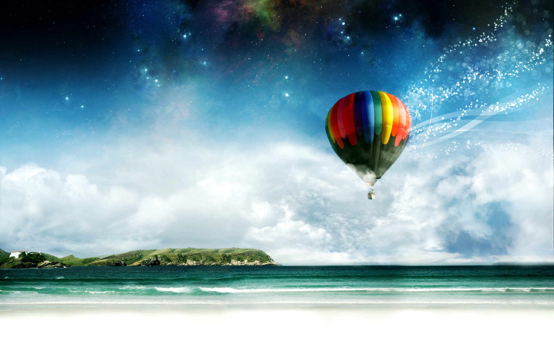 Reflejo del cielo y las nubes en el agua cristalinaReflejo del cielo y las nubes en el agua cristalina