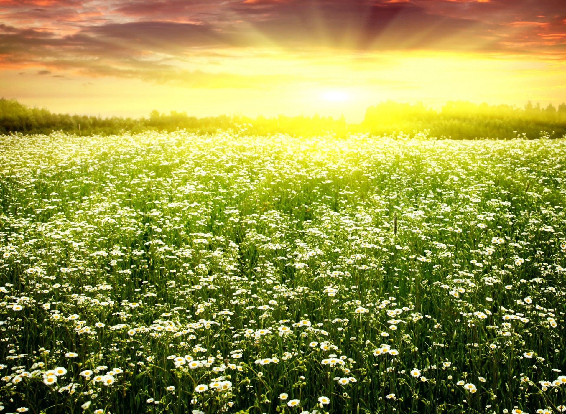 Puesta de sol en un bosque de pinos. luz a través de los árbolesPuesta de sol en un bosque de pinos. Luz a través de los árboles