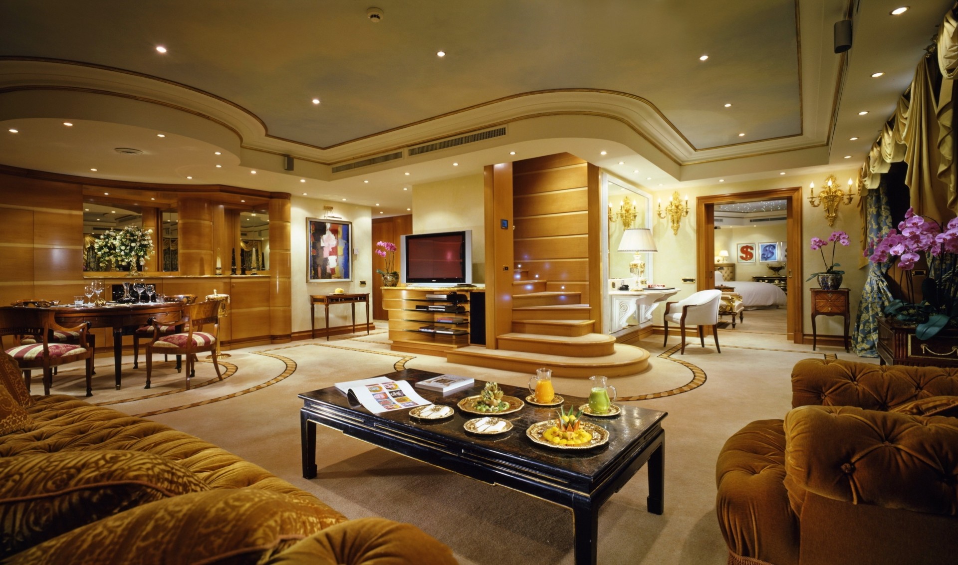Elegante interior de la sala de estar con escalerasElegante interior de la sala de estar con escaleras