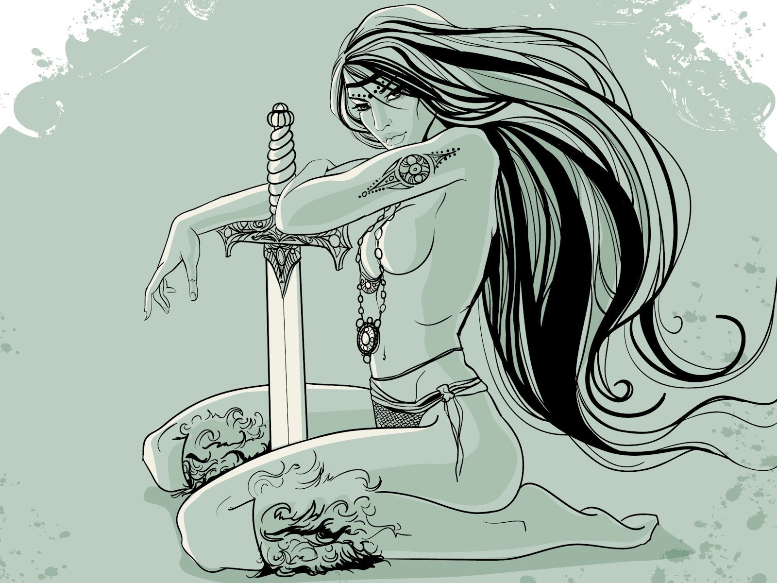 Arte fantasía: la chica con el pelo blanco y la espadaArte fantasía: la chica con el pelo blanco y la espada