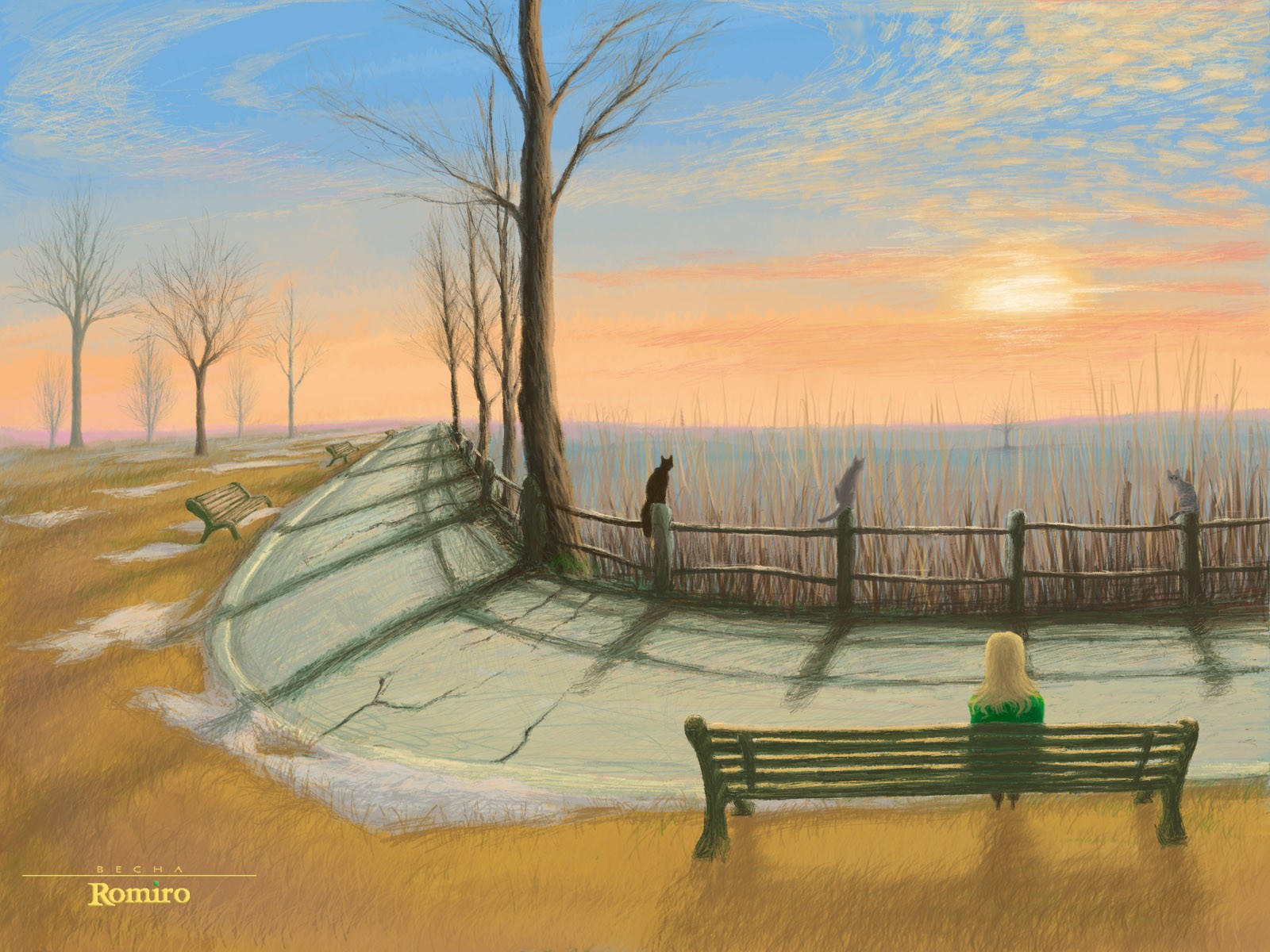 Chica sentada en un banco en los rayos del atardecerChica sentada en un banco en los rayos del atardecer