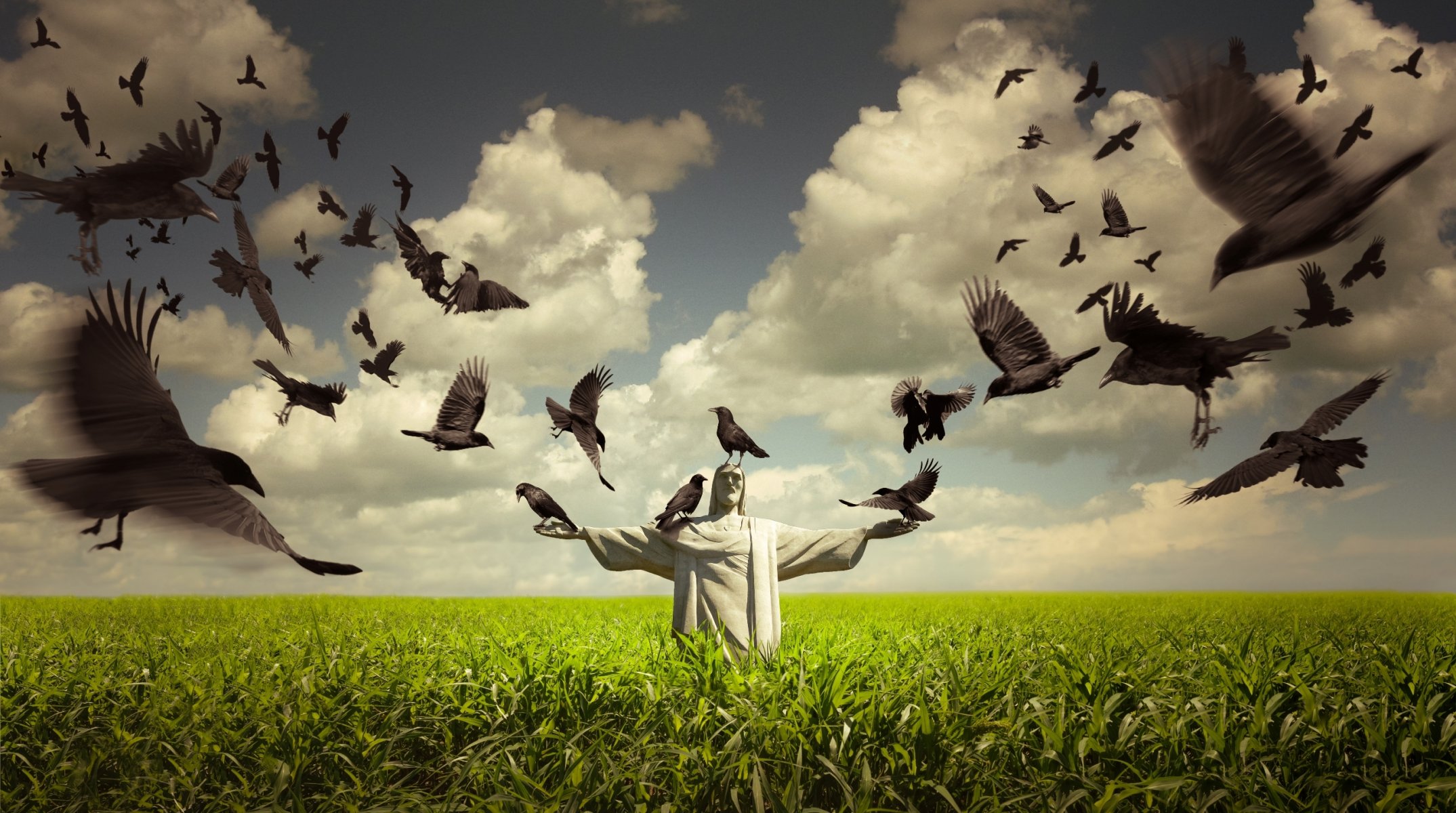 Estatua de buda contra el cielo, el sol, las nubesEstatua de Buda contra el cielo, el sol, las nubes