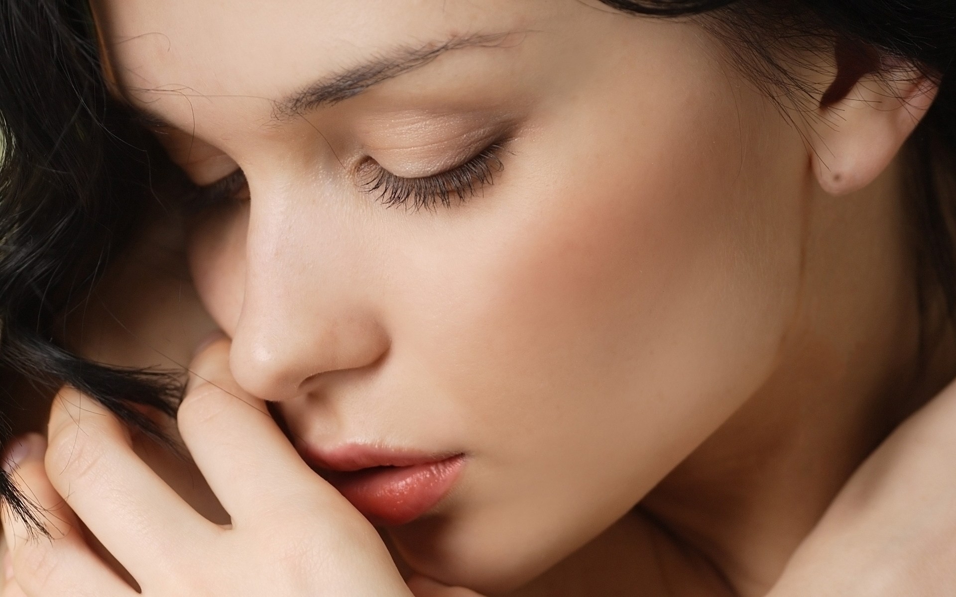 Chica con el pelo largo en el fondo de una hermosa puesta de sol