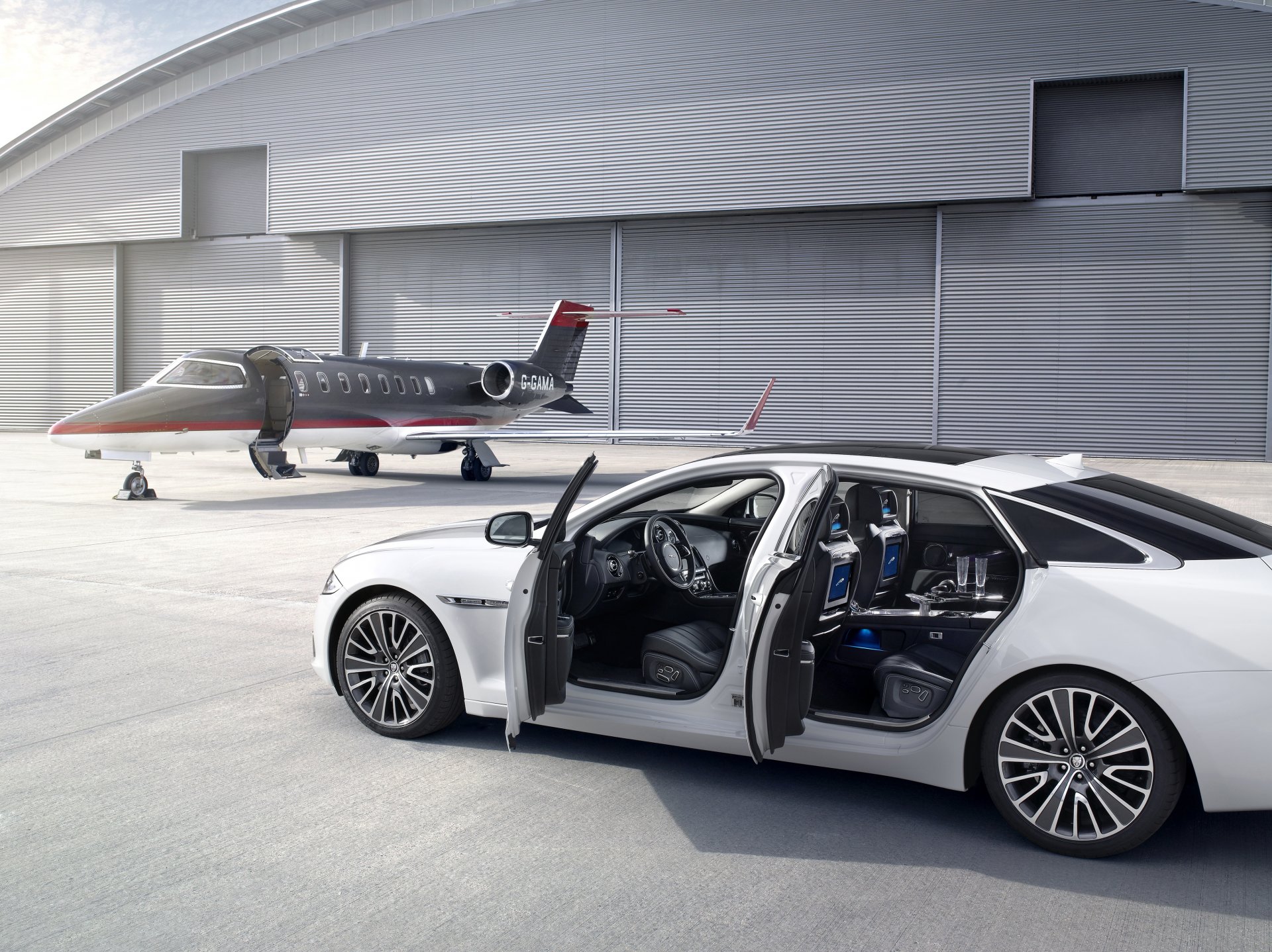 Jaguar blanco en el fondo de un avión con las puertas abiertas