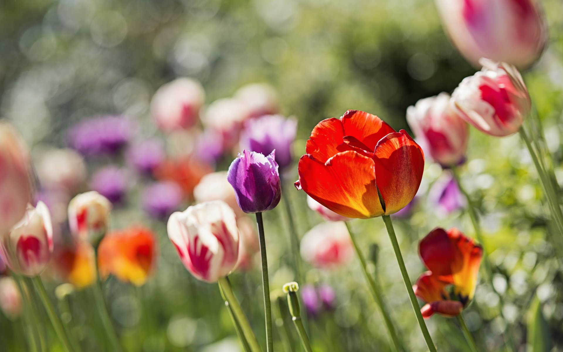 Tulipanes en el macizo de flores-primavera en la duchaTulipanes en el macizo de flores-primavera en la Ducha