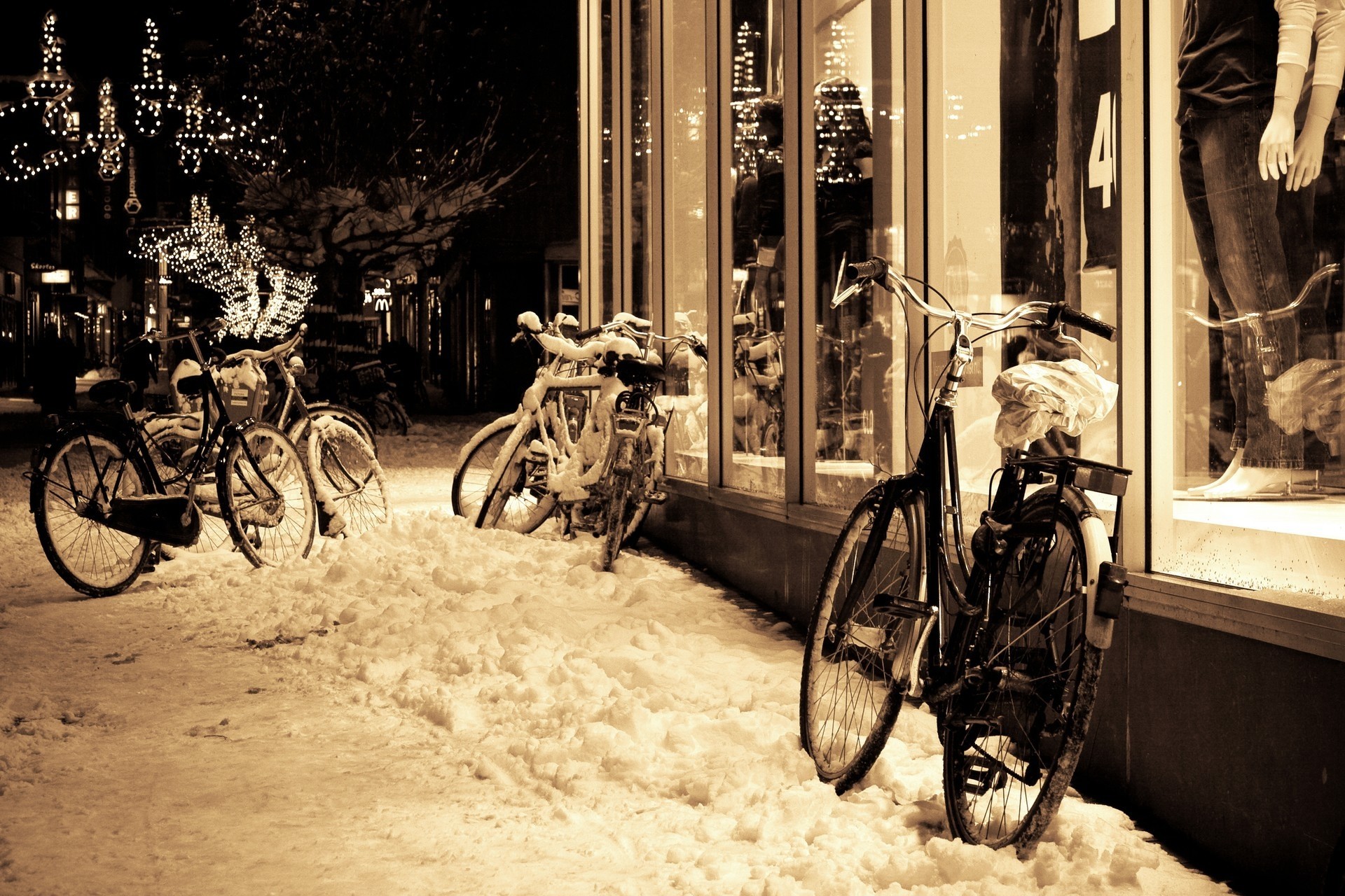 Bosque de nieve de invierno en ventisqueros bajo las nubesBosque de nieve de invierno en ventisqueros bajo las nubes