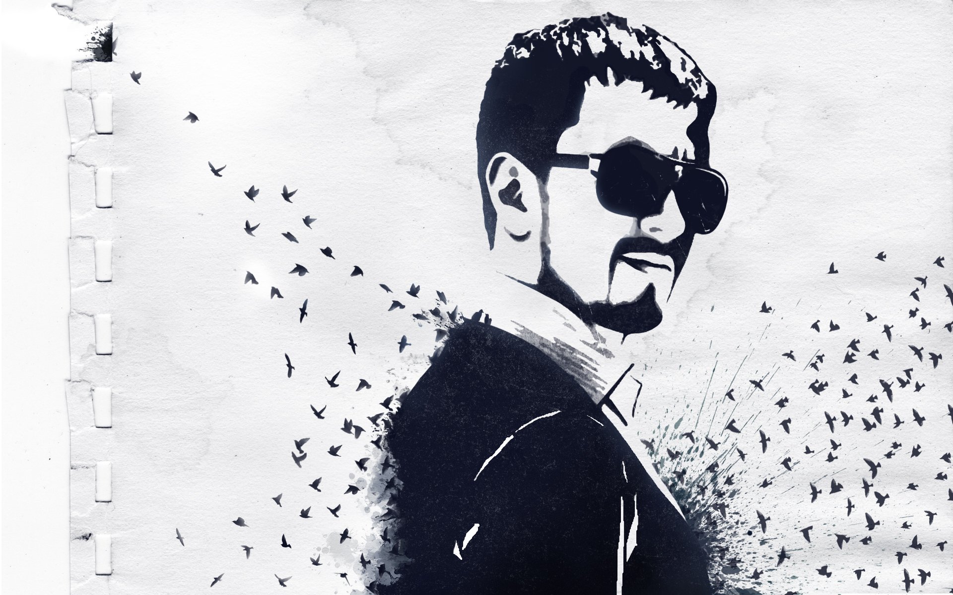 Imagen en blanco y negro de un hombre con gafas oscuras