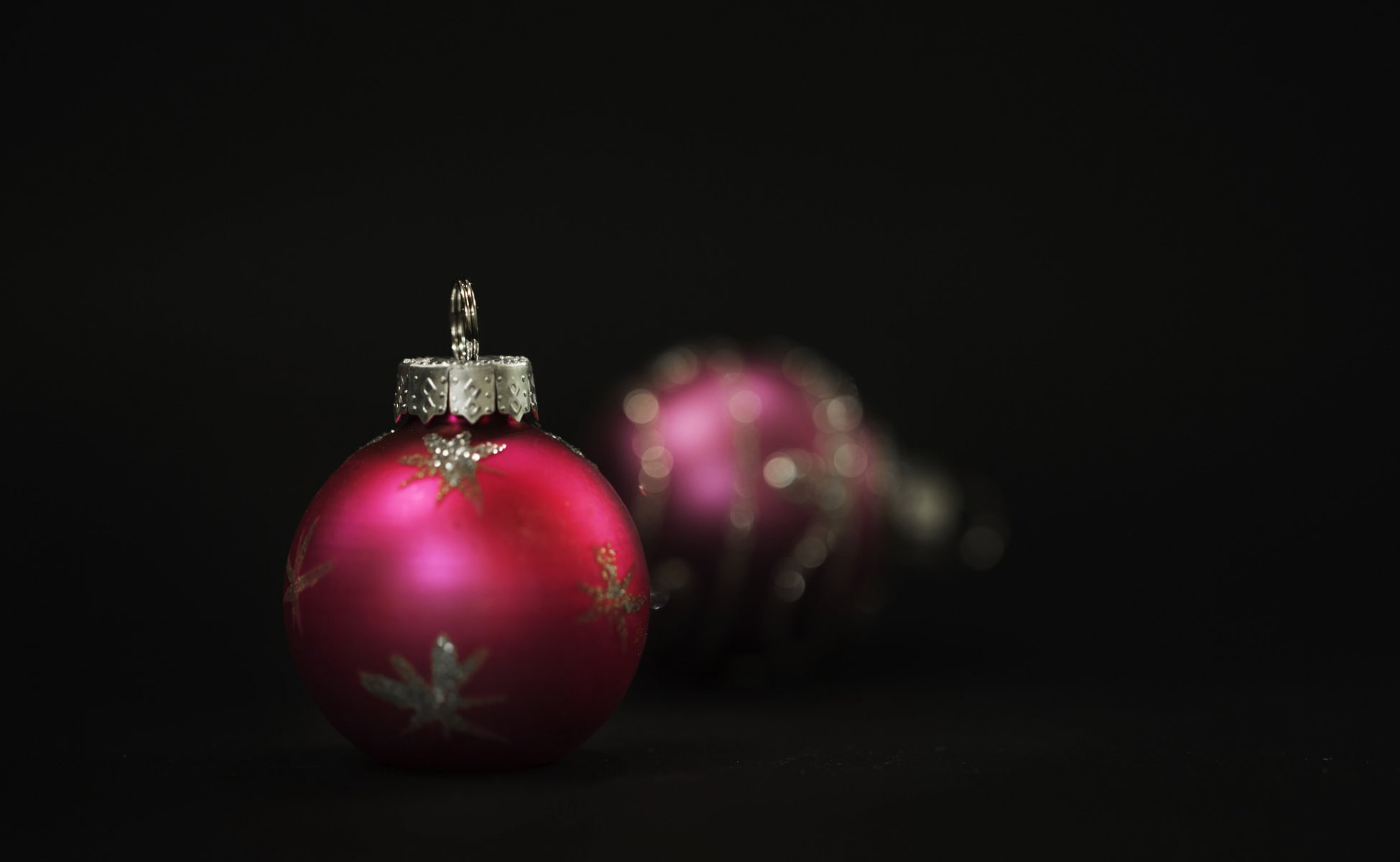 Galletas de año nuevo con glaseado de chocolate blanco sobre un fondo de bola y nueces