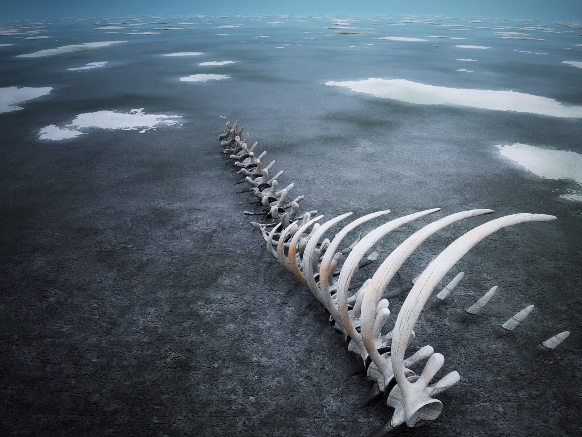 La cresta y las costillas de un animal gigante desconocidoLa cresta y las costillas de un animal gigante desconocido