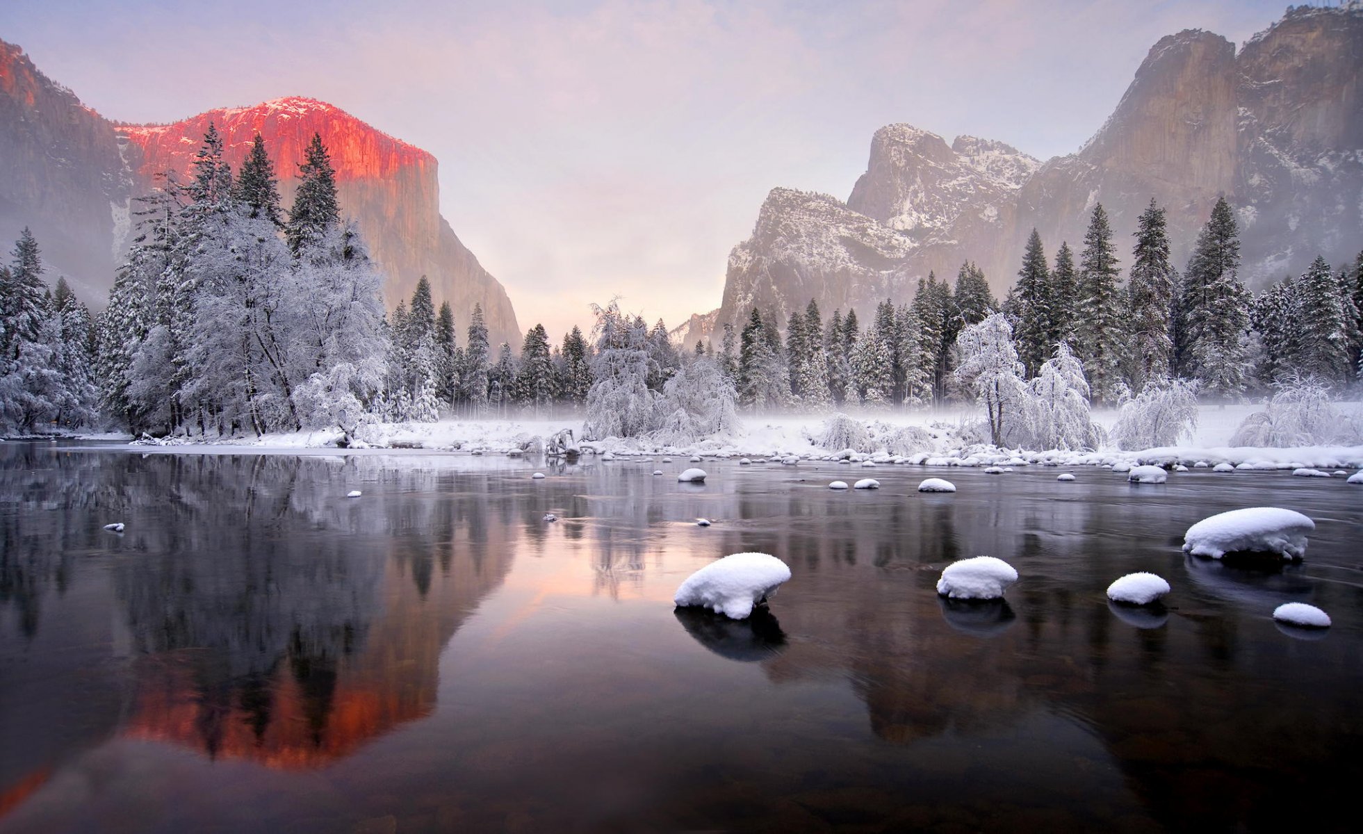Reflejo de un bosque de invierno en el agua