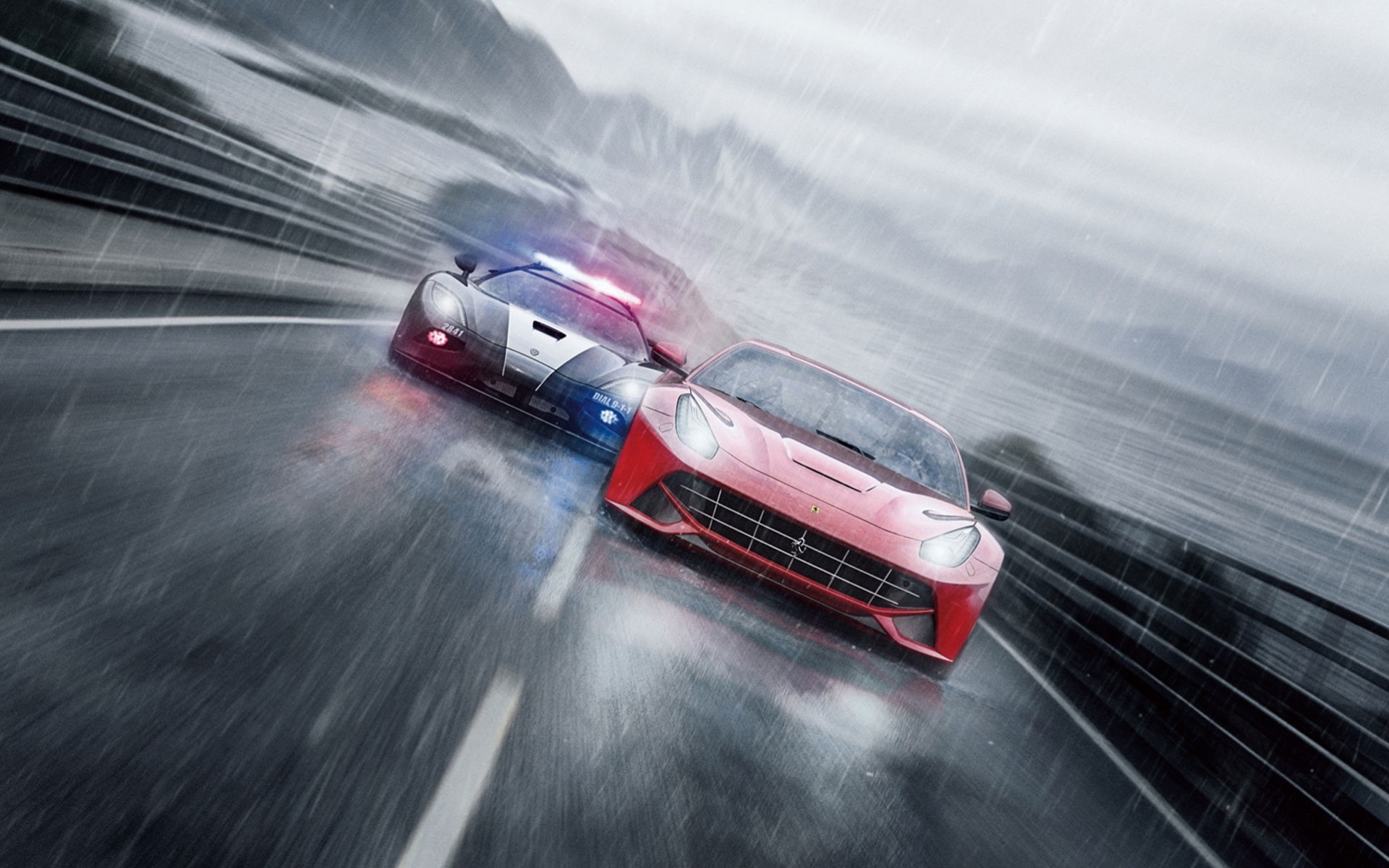 Ferrari rojo en la noche a gran velocidad corriendo por la carreteraFerrari rojo en la noche a gran velocidad corriendo por la carretera