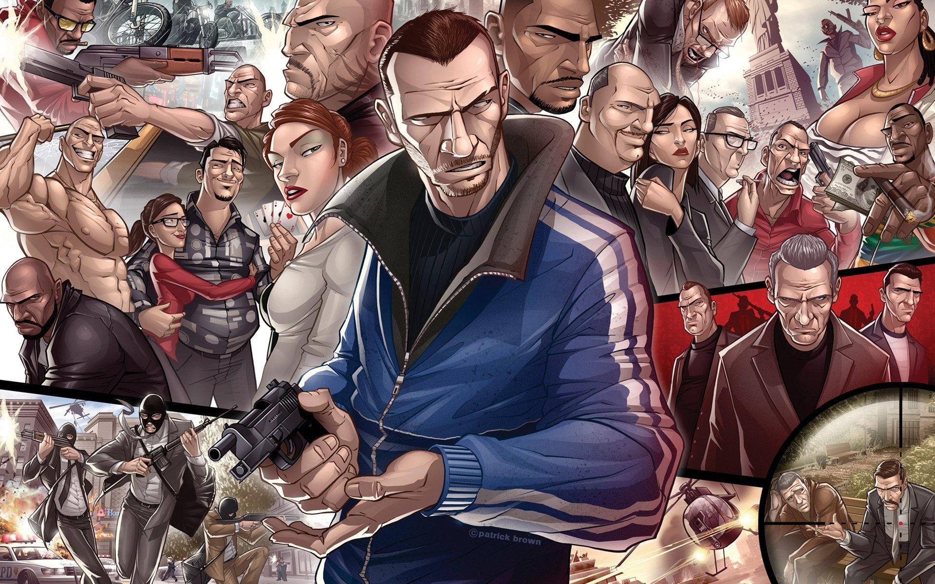 Grand Theft Auto V Michael Franklin Trevor Patrick Brown arte