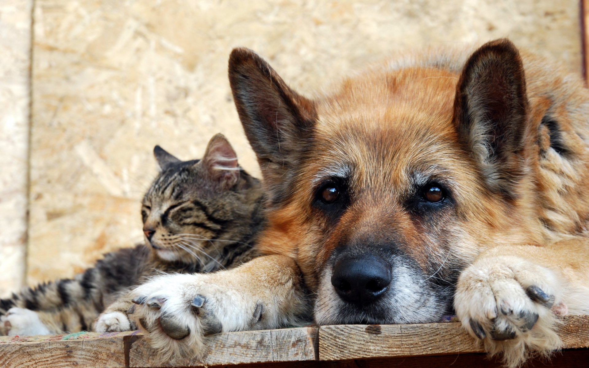 La amistad de un gato rayado y un perro rojo