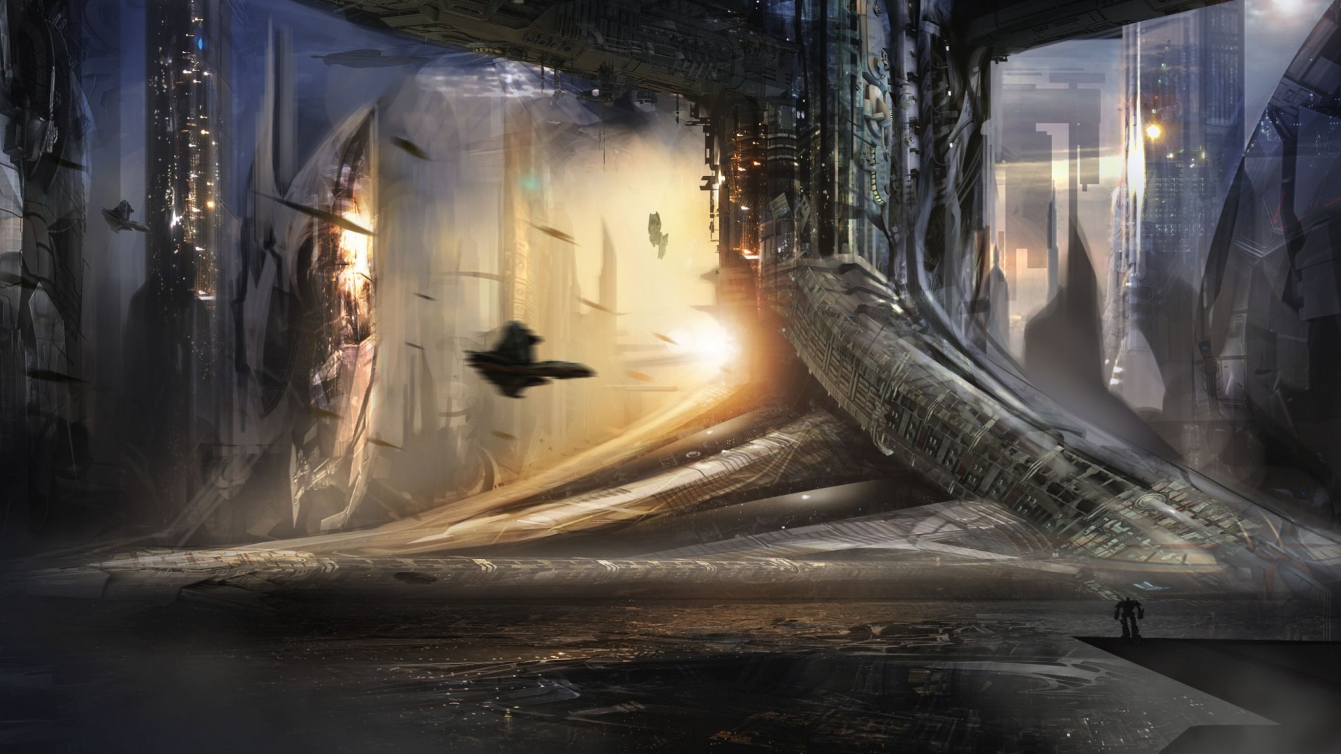 Ciudad del futuro con naves espaciales