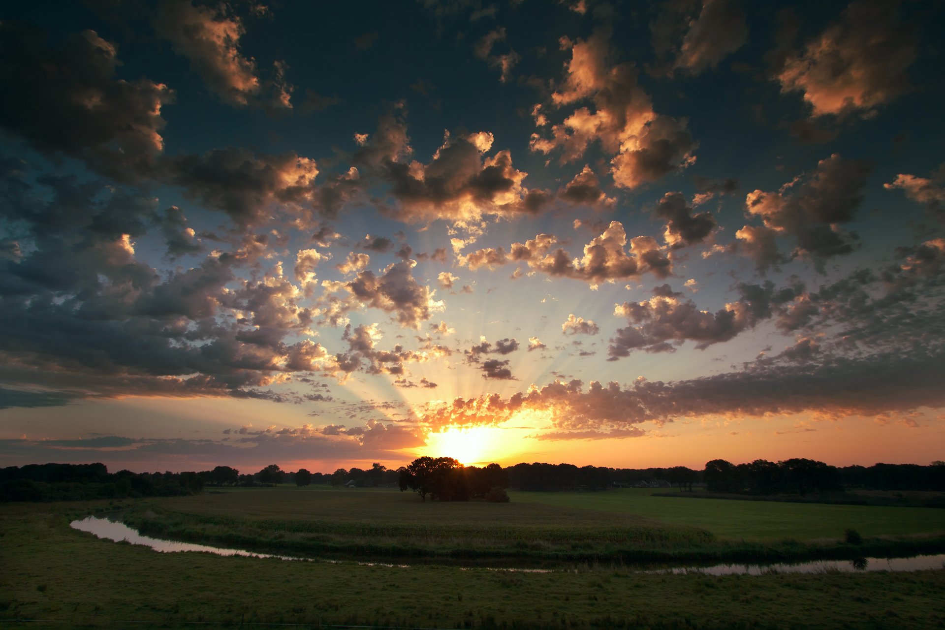 Silueta de árbol y hierba contra el fondo de una puesta de sol roja